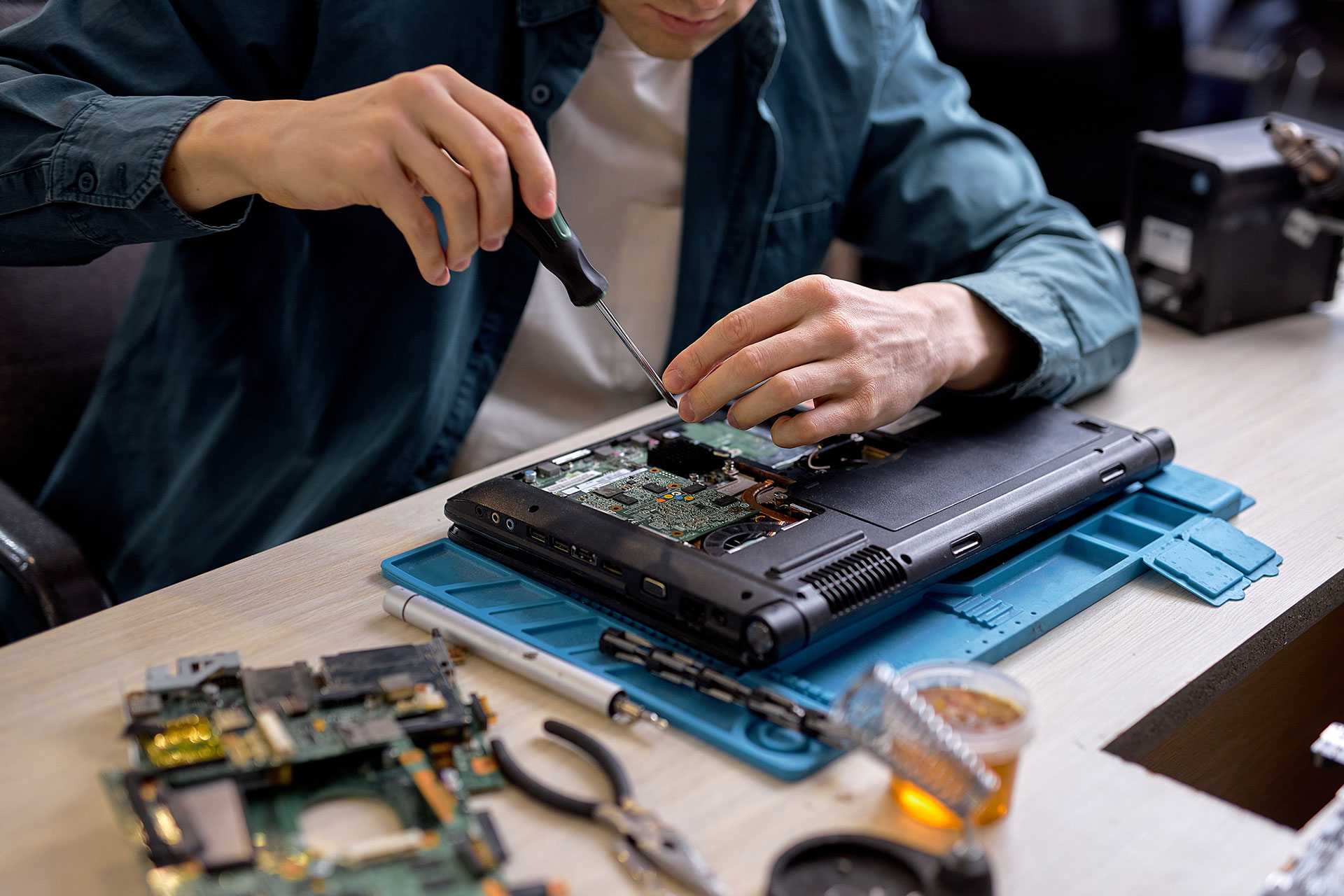 Unsere Reparaturleistungen umfassen sowohl Hardware- als auch Softwareprobleme. Dazu gehören unter anderem der Austausch defekter Komponenten, die Reparatur von Netzteilen, Festplatten oder Displays, die Beseitigung von Viren und Schadsoftware sowie die Behebung von System- und Treiberfehlern. Auch bei Datenproblemen oder nach einem Systemabsturz unterstützen wir Sie kompetent.